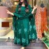 Bring traditional charm and modern elegance together with this Long Kurta featuring Discharge Floral Print and Printex, paired beautifully with matching pants and a dupatta. This set is designed for women who appreciate comfort without compromising on style. Whether you’re attending a festive occasion or a casual gathering, this set ensures you look graceful and feel comfortable all day long.