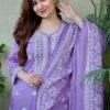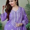 Add a refreshing pop of color to your wardrobe with this Lavender Pure Cotton Kurta Set. Crafted from 100% premium cotton, this set is designed for ultimate comfort while offering a graceful and modern look. Featuring a round neck and a matching dupatta, this set is perfect for both casual and semi-formal occasions.